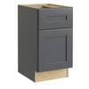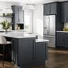 The Newport Deep Onyx collection from Home Decorators Collection features a durable onyx gray painted finish which will create a classic, bold feel in any kitchen. Shaker-style doors and drawer fronts are crafted from solid MDF with a flat recessed center panel. Cabinets feature CARB compliant all-plywood construction, with full-depth 3/4 in. thick adjustable shelves for added storage.