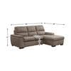 The transitional look of the Maja Collection is enhanced with extraordinary function creating storage and sleep space within your living room. Conveniently stored beneath the sofa is a pull out trundle that rises to create a bed while the top of the attached chaise opens to reveal ample storage space. The sofa is offered in taupe textured plush microfiber with contrast stitching.