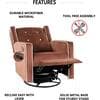 Enhance your interior space with this swivel rocker recliner. Soft, easy-care microfiber cushions provide plenty of seating space, and the backrest moves smoothly. For superior comfort, it comes with overstuffed track arms. A rotating swivel delivers smooth rocking, and an easy-to-pull button on the track arm allows easy adjustment. You can recline fully along the backrest and pull the footrest up.