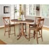 This beautiful 5-piece set with 36 in. x 48 in. solid wood counter height pedestal table from International Concepts is perfect for your dining or entertaining needs. The solid hardwood butcher block top features a 12 in. butterfly leaf to expand table from 36 in. round to 48 in. x 36 in. oval. The steel guides and quality craftsmanship make it easy to pop the leaf in and out to suit your needs. Comes with 4-comfortable and durable stools. The table set comes in a distressed oak and is also offered in a variety of premium finishes or you can also buy it unfinished. Trust us with your dining needs as International Concepts has been manufacturing quality solid wood home furnishings since 1979.