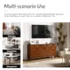 Enhance the elegance of your living space with the addition of this stunning sideboard. This versatile piece is designed to offer convenient storage in your hallway or any room in your home. With its 4-doors and 2-adjustable interior shelves, you can easily store and organize a wide range of items, from cosmetics to tableware, ensuring everything is within reach whenever you need it. Crafted from high-quality solid and manufactured wood, this sideboard boasts a sturdy construction that is built to last. The 4-solid wood legs provide stable and reliable support, ensuring the sideboard can bear its weight capacity without compromising its structural integrity. Not only does this sideboard offer practical storage solutions, but it also adds a touch of beauty to your home. Its exquisite appearance and on-trend color palette create a warm and cozy atmosphere, perfectly complementing your living room or dining space. Experience the perfect blend of functionality and style with this exceptional sideboard. Upgrade your living space and make it more organized and inviting with this remarkable piece. Choose this sideboard to elevate the aesthetic appeal and functionality of your home.