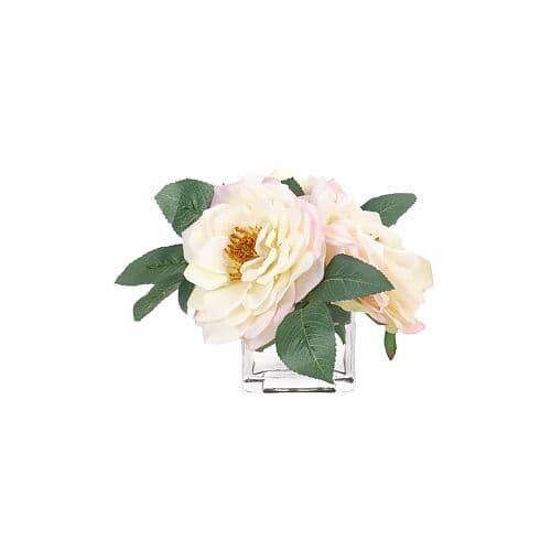 5" Pink Cream Rose in Glass Vase - Faux - NDI