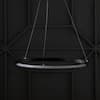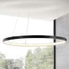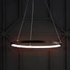 A single hoop with a matte black finish is suspended with three wires in this modern hoop pendant light. An integrated single-light LED lines its interior illuminating any space with a balance of brightness and warmth. Ideal for any modern setting, it will look right at home over a kitchen island or dining area.