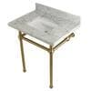 Kingston Brass Square Sink Washstand 30 in. Console Table in Carrara with Metal Legs in Brushed Brass HKVPB30MBSQ7