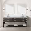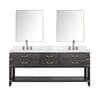 Lexora Irvington 80 in W x 22 in D Brown Oak Double Bath Vanity, Carrara Marble Top, Faucet Set, and 36 in Mirrors LVI80DK111