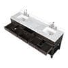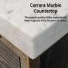 The Irvington bathroom vanity combines superb wood tone colors - Black Oak/Grey Oak/Brown Oak with a lovely Carrara marble top to create a luxurious yet simple structure that will complement any modern, industrial or boho bath decor. The large structure with deep drawers is offset by the free space beneath the drawers which doesn't sacrifice storage space but provides a functional platform for storing bathroom essentials without affecting the aesthetics. Designed with undermounted sinks pre-drilled to fit 8-inch spread faucets and a minimalist contrast, this vanity impresses with its simplicity and functionality, a design that meets both your storage needs and design preferences.