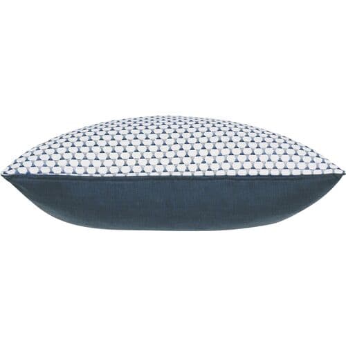 The embroidered front features a blue geometric design that embodies coastal style, while the back is a solid blue shade. Crafted in the USA, the pillow is filled with plume feathers, providing lasting comfort.