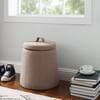 Linon Home Decor Bianca Light Brown Fabric Round 16 in. High Storage Ottoman THD02896