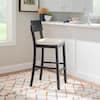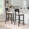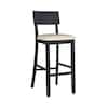 Linon Home Decor Rodman 31.5 in. Charcoal Washed High Back Wood Bar Stool with Beige Fabric Seat THD04064