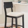 The Rodman Bar Stool combines functionality and style, making it a perfect addition to your kitchen counter or home bar area. Featuring a charming wire brushed charcoal black washed finish on the acacia wood frame, this bar stool exudes a rustic yet modern appeal that effortlessly complements various interior decor themes. The padded seat, upholstered in a soft beige linen-cotton blend fabric, offers exceptional comfort for extended sitting. The backless and armless design allows for easy movement and versatility, while the sturdy construction ensures stability and durability. Whether enjoying casual meals, entertaining guests, or simply relaxing with a drink, the Rodman Bar Stool provides a comfortable and stylish seating option that elevates your home decor. With a seat height of 31.5", this stool is an excellent match for bars 41" to 43" high.