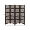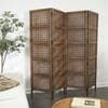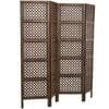 This 4-panel room divider is see-through because of the traditional carvings. Still, it can provide privacy with the addition of curtains or Japanese paper. Designed with felt or rubber stoppers at the base that prevent scratching furniture and table tops, as well as sliding around. This item ships in 1 carton. Due to the handmade nature of this item, no two will be alike, there will be slight differences in shape, size, and color. Suitable for indoor use only. This item ships fully assembled in one piece. Made in India. Item features 4 panel screens. This is a single brown colored folding panel partition. Traditional style.