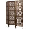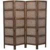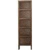 Litton Lane 6 ft. Brown 4 Panel Floral Handmade Hinged Foldable Partition Room Divider Screen with Intricately Carved Designs 34010