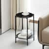 Magic Home 14 in. Round Coffee Table 2-Layer Sofa End Table with Marble Tabletop, Black Metal Frame for Bedroom Living Room Office CS-W28218474