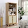 Manhattan Comfort Sheridan 70.86 in. Tall Nature Modern Medium Density Fiberboard (MDF) 7-Shelf Cane Accent Bookcase BC-6GLF-NA