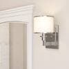 This Nexus One-Light Sconce refreshes your home's lighting. It features an oil-rubbed bronze finish and a white fabric drum shade for a classic look. It's easy to install yourself with the included hardware and it uses one candelabra base bulb.