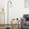 Merra 62 in. Black Retro Industrial Arched Floor Lamp with Metal Wire Shade PTL-0310-BK-BNHD-1