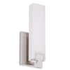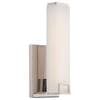 This LED bath light has a look that is both sophisticated and casually decorative. 1 minimalist tubes of elegant, high-style etched opal glass are joined at the center by a round metal Back plate in beautiful Polished Nickel finish, and then accented with a subtle stylized detail that gives it just a touch of home-style charm. This LED light may also be hung vertically or horizontally, adding to this design's versatility.