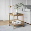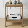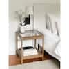 Nathan James Hayes Light Brown Solid Wood Glass Top with Open Storage Shelf Nightstand, Bedside, End or Side Table 33301