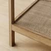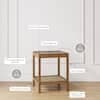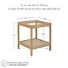The Hayes Nightstand, Side or End Table has a clear tempered glass top and an open storage shelf designed with lots of visual space that works perfectly as an end table next to your sofa or as a nightstand in your bedroom. The solid wood frame with a light brown, wire-brushed finish and rattan shelf on the bottom add a natural touch and give the side table a unique boho-chic feel. Place Hayes beside your sofa as an end table styled with an accent lamp, decorative coasters and personal touches or use it as a nightstand and add a jewelry dish and some of your favorite reads.