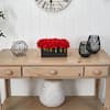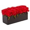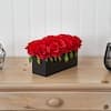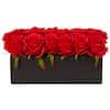 Bring the timeless elegance of red roses into any room in your home or office. These faux roses come in a black rectangle planter. The entire arrangement is compact enough to work on nearly any surface you choose, from a dinner table centerpiece to a bright accent in a reception area.