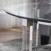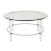 This round, translucent coffee table will set your whole living room revolving around. Offering a wide surface on which to display beautiful items, it also opens up the room and frees up space. Made from the highest quality materials, this is a purchase you're sure to treasure.