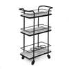 Noble House Judith Black and White 3-Tier Marble Shelf Bar Cart 106047