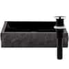 Novatto Square Black Granite Vessel Sink with Chiseled Exterior and Umbrella Drain in Matte Black NOSV-ANSQMB