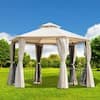 Outsunny 2-Tiered Outdoor Hexagon Garden Gazebo Canopy with Removable Mesh Curtains and UV Sun Protection, Brown 84C-052YL