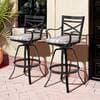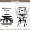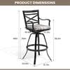 The patio swivel bar stools are made of Sunbrella fabric and sturdy powder-coated cast aluminum frame. The Sunbrella fabric features 100% solution-dyed acrylic, 5-years non-fading top. The armrest and backrest design of the bar stools are curved and designed to be ergonomic. Swivel bar stools make the chair 360°rotatable.