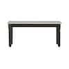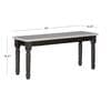 With the striking contrast between a smokey white seat and dark grey base, this bench is ready for fine dining or adding extra seating anywhere in your home. Multi step glaze on seat brings out the grain of this oak wood veneer. Sculpted, turned legs with glaze finish add a farmhouse touch. Solid wood construction is built to last. Not just for dining, this bench can also be used in your entryway, mudroom or even at the foot of your bed.