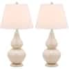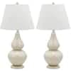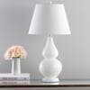 SAFAVIEH Cybil 26.5 in. White Double Gourd Glass Table Lamp with Off-White Shade (Set of 2) LIT4088A-SET2