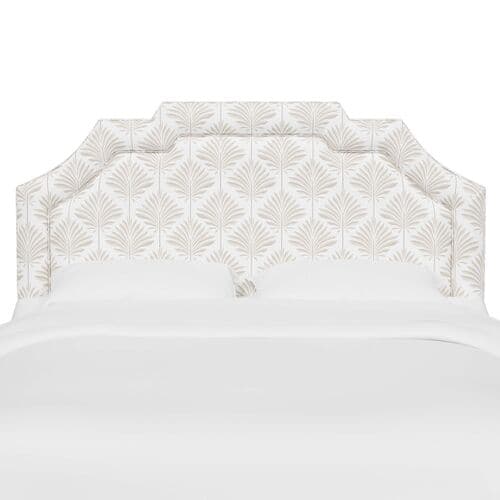The fanlike pattern of the cerifera palm inspired the fabric on this elegant headboard. Made in the USA, it provides lasting comfort and support with ample cushioning.