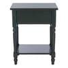 Brimming with vintage style, the Tami End Table will complement every setting from coastal cottage to prairie farmhouse. With turned spindle legs, handy shelf and storage drawer, this is crafted of pine with dark teal finish for a look that's fashion-right yet superbly timeless. The Tami is a perfect companion in country homes, city apartments or formal manors for those looking for a chic design.