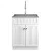 When it comes to laundry spaces or utility rooms, who doesn't need more storage space. The Beckham Laundry Cabinet is both a simple and practical solution to your storage needs. This laundry cabinet features an easy to clean stainless-steel sink, 2 shaker doors with grooved detail and brushed nickel hardware. Includes a single lever high-arc pull out brushed nickel faucet and plumbing kit for easy installation.