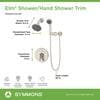 The Symmons Elm Collection offers simple sophistication blending sleek form and simple lines with an organic design. Plated in a high quality finish over solid metal, this Elm shower trim has the durability to add contemporary styling to your bathroom for a lifetime. It includes a showerhead, shower arm, escutcheon, hand shower with 60 inch flexible hose, a cradle for the hand shower, shower lever handle, and an integral volume control handle to adjust the shower water volume. The solid brass valve cover plate features hot and cold indicators to ensure custom water temperature setting and ease of use. At a low flow rate of 1.5 gallons per minute, the single mode eco friendly showerhead conserves water without affecting performance, saving you money on your water bill. This model includes everything you need for quick installation, allowing you to update your bathroom without replacing your valve. It is also backed by the Symmons technical support team and a lifetime limited warranty.