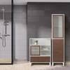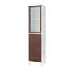 Teamson Home's Tyler Modern Freestanding Linen Tower features a sleek white finish with a pair of cabinets - one enclosed by a glass-panel door and one by a contrasting walnut brown finished door with brass pulls. Versatile and sturdy, each cabinet features an adjustable shelf for custom storage and magnetic latch that operate silently, eliminating clicking or slamming noises. Made of durable engineered wood, includes anti-tipping hardware, safe for spaces throughout your home.