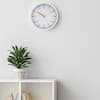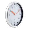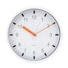 This modern 10 in. wall clock will fit into any room environment. The silver frame features a stylish white face with orange hour and minute hands and squiggly second hand. The clock also features a silent sweep movement, which allows the second hand to sweep around the dial and eliminates all annoying ticking sounds. This clock uses (1) AA battery, which is sold separately.