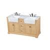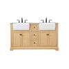 Unbranded Timeless Home 60 in. W x 22 in. D x 34.75 in. H Double Bathroom Vanity Side Cabinet in Natural Wood with Marble Top TH120460DNW