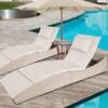 TIRAMISUBEST Light Brown Wicker Outdoor Reclining Chaise Lounge with Light Gray Cushions WLXY01GRAY