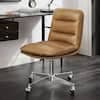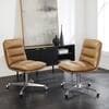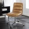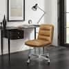 Boasting superior style for your home office with this genuine leather swiveling and movable task chair. Top-grain leather upholstery sits atop supportive foam padding. This minimalism armless chair is designed to maximize comfort and coziness, while channel-seamed cushioned detailing offers a mid-century retro feel.