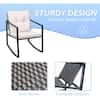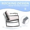 Tozey Black 3-Pieces Metal Wicker Outdoor Rocking Chair Bistro Conversation Set with White Cushions T-LCRC943RBK