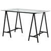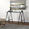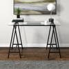 With a modern A-frame design, this desk offers a new transitional piece for you to work from home in luxury. Feel inspired by its sawhorse table design, while working on the open canvas of its tempered glass top. The sleek and simple lines of this desk offer a new element of design for your office, sure to spark creativity.