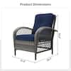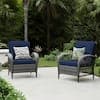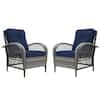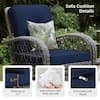 2 Pieces Outdoor Gray Wicker Patio Conversation Sofa Seating Set with Cushions in Navy Blue