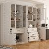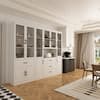 Add storage, organization and style to your kitchen with this White Wood Buffet Combination Kitchen Cabinet. No more stacking pots and pans on top of each other, this pantry storage cabinet will give you the space to know where everything is at and get to it easily. Multiple shelves ensure both small kitchen appliances and cooking utensils can be neatly stowed away and the glass doors make it easy to see where your things are. This unit is easy to clean with a waterproof coating on the surface if the MDF construction.