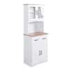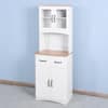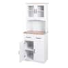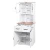 FUNKOL White Wooden Kitchen Cabinet Pantry Room Storage Microwave Cabinet with Framed Glass Doors and Drawer W409wmqS00002
