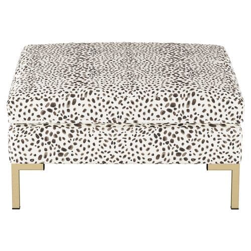 Fabric by Cloth and Co. enhances this ottoman, which rests on brass-finished bracket-style legs. Upholstered in linen-blend fabric with a leopard-spot pattern, it features a removable and reversible pillow-top seat. A cushy fill ensures comfort and support. The cushion is both removable and reversible. Handmade in the USA.