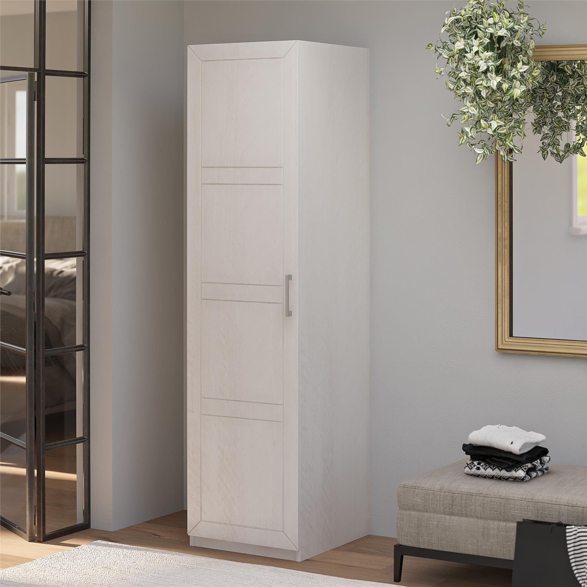 Transform your cluttered closet, creative workspace, or any room in your house with the Perry Park Modular Bundle Wardrobe Shelving Unit with Drawer and Membrane Door Kit by Systembuild Evolution. Crafted from engineered wood, it boasts a neutral finish that complements both concealed spaces and exposed walls. Utilize the hanging rod, drawer, and lower shelves to accommodate your storage needs effectively. The versatile design allows you to incline the two lower shelves for easy access to your favorite shoes, or keep them level to neatly stack trousers and folded t-shirts. Complete with an included Membrane Door Kit, this unit arrives conveniently at your doorstep in a single package. For enhanced organization, link multiple units together and experiment with other Modular Closet options from Systembuild Evolution (available separately).