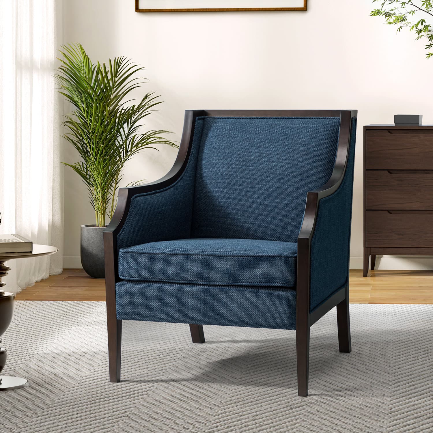 This accent chair set provides a classic look and spare seating in your living room or family den. It's crafted with a kiln-dried solid wood frame with sleek, angled arms, and it rests on tapered legs with a glossy walnut brown hue. This chair is upholstered in weathered polyester in your choice of color. Foam filling and pocket springs in the seat give you just the right amount of support during movie night or a much-needed catch-up with friends. Plus, the seat cushion is removable, so it's a breeze to vacuum up those inevitable crumbs. This chair accommodates up to 250 lbs.