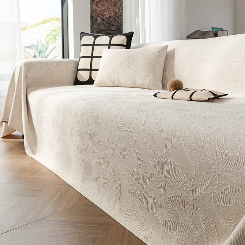Slashop Elegance Leaf Pattern Sofa Cover - Warm White