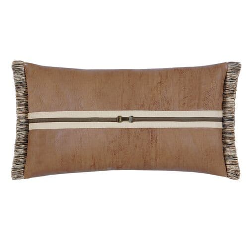 Carrie Faux Leather Fringe Lumbar Pillow - Brown | Cushion, Bolster